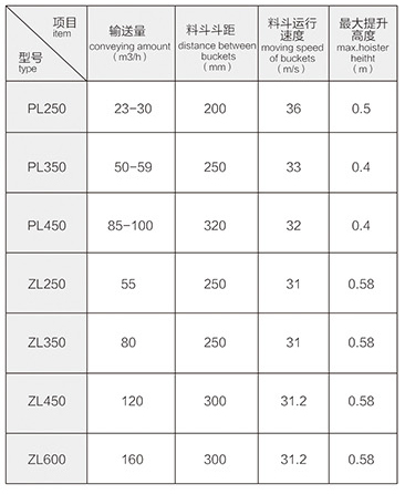 5、PL、ZL型斗式提升機(jī)技術(shù)參數(shù)