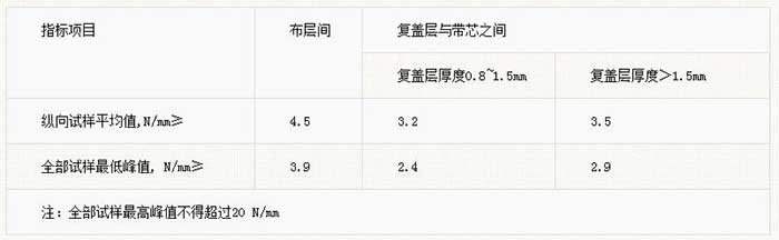 聚酯輸送帶的粘合程度都有一定的指標,層與層之間,還有就是覆蓋層與帶芯之間都是有一定的標準的,什么樣的采是正規的標準呢。如下圖